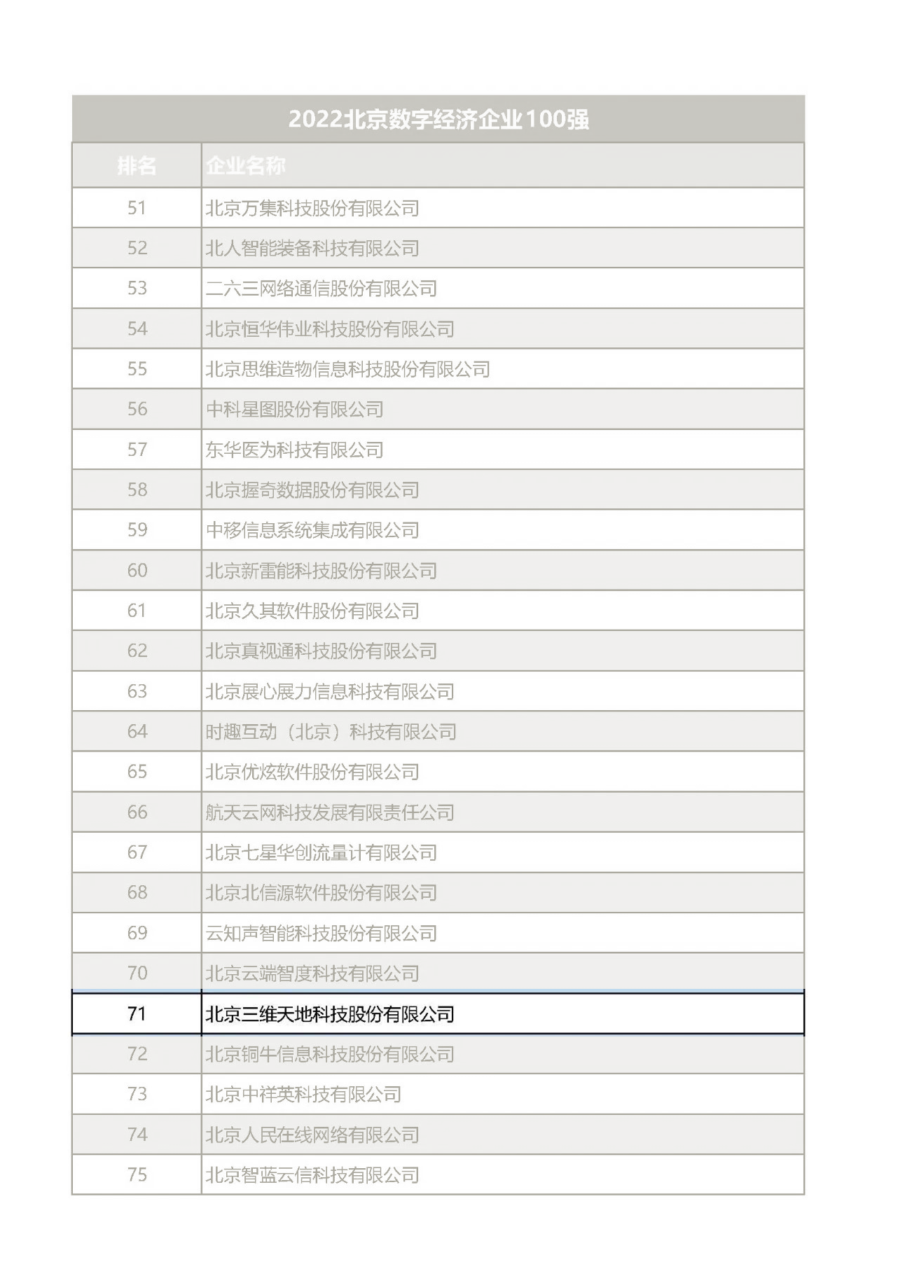 三維天地榮登2022北京數(shù)字經(jīng)濟(jì)企業(yè)100強(qiáng)榜單