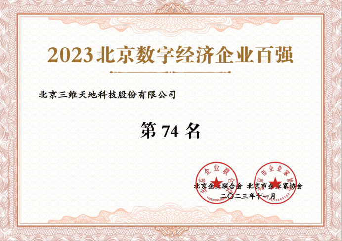持續(xù)蟬聯(lián)!三維天地入選2023北京數(shù)字經(jīng)濟(jì)企業(yè)百?gòu)?qiáng)榜單