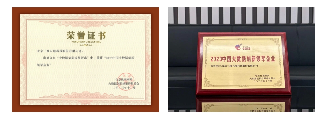 點(diǎn)亮數(shù)據(jù)新價值|三維天地榮獲2023中國大數(shù)據(jù)創(chuàng)新領(lǐng)軍企業(yè)