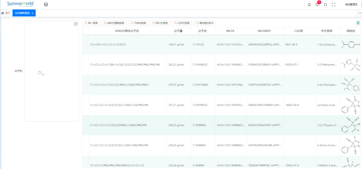 在藥品研發(fā)過(guò)程中,化合物管理是至關(guān)重要的一環(huán)。它涉及新藥的研發(fā)、生產(chǎn)、質(zhì)量控制等多個(gè)環(huán)節(jié),對(duì)于提高藥品研發(fā)效率和質(zhì)量具有重要意義。隨著信息化進(jìn)程的加快,越來(lái)越多的企業(yè)開(kāi)始采用信息化系統(tǒng)來(lái)管理化合物,以提高新藥研發(fā)的效率和準(zhǔn)確性。 三維天地根據(jù)多年醫(yī)藥行業(yè)實(shí)施經(jīng)驗(yàn)打造了一套合規(guī)、科學(xué)、高效,符合規(guī)范的醫(yī)藥科研管理系統(tǒng)(SW-RDMS),助力研發(fā)機(jī)構(gòu)實(shí)現(xiàn)藥物研發(fā)過(guò)程的科學(xué)化、電子化、信息化管理。 SW-RDMS針對(duì)藥物研發(fā)企業(yè)信息化管理提供了全面的業(yè)務(wù)解決方案,其中化合物管理模塊內(nèi)容涵蓋化合物注冊(cè)及化合物庫(kù)存管理、化合物信息庫(kù)管理、注冊(cè)化合物檢索查詢、化合物數(shù)據(jù)權(quán)限控制等各方面內(nèi)容,在滿足藥物研發(fā)日常工作使用的同時(shí),更強(qiáng)調(diào)研發(fā)成果的管理及維護(hù),助力企業(yè)建立標(biāo)準(zhǔn)的化合物管理方式。 2.1 化合物注冊(cè)及化合物庫(kù)存管理 SW-RDMS提供完備的化合物注冊(cè)流程,除支持常規(guī)方法登記注冊(cè)新產(chǎn)生的化合物外,還可與ELN進(jìn)行聯(lián)動(dòng),將實(shí)驗(yàn)產(chǎn)生的化合物一鍵注冊(cè),注冊(cè)內(nèi)容包括記錄化合物編號(hào)、注冊(cè)類型、化合物名稱、結(jié)構(gòu)式、基本理化信息、結(jié)構(gòu)確證信息、分析檢驗(yàn)信息、藥理毒理信息等。 此外還支持管理注冊(cè)的化合物庫(kù)存存量信息、批次信息,在后續(xù)實(shí)驗(yàn)過(guò)程中可直接引入使用。 2.2 注冊(cè)化合物檢索查詢 SW-RDMS支持對(duì)注冊(cè)的化合物進(jìn)行多種方式的檢索查詢,如通過(guò)基本信息檢索查詢、通過(guò)已知的結(jié)構(gòu)式精確搜索或相似性搜索、通過(guò)部分母核結(jié)構(gòu)進(jìn)行子結(jié)構(gòu)搜索等。 2.3 化合物信息庫(kù)管理 為便于研發(fā)人員更方便地查詢化合物信息,SW-RDMS提供了不少于2000萬(wàn)條公開(kāi)化合物數(shù)據(jù)的信息庫(kù)(支持每周30萬(wàn)數(shù)據(jù)量的擴(kuò)增),記錄信息內(nèi)容包括化合物基礎(chǔ)標(biāo)識(shí)信息、理化信息、晶體結(jié)構(gòu)等。 在實(shí)際使用中研發(fā)人員在實(shí)驗(yàn)過(guò)程中可通過(guò)分子式、CAS號(hào)等信息、結(jié)構(gòu)式進(jìn)行化合物檢索后,將檢索出的化合物直接導(dǎo)入到實(shí)驗(yàn)記錄中,大大減少重新繪制結(jié)構(gòu)式的工作,為研發(fā)實(shí)驗(yàn)提供便利。 2.4 化合物數(shù)據(jù)安全控制 在化合物數(shù)據(jù)安全性方面,SW-RDMS支持通過(guò)數(shù)據(jù)加密的方式來(lái)保證機(jī)密數(shù)據(jù)不易泄露,通過(guò)權(quán)限的配置來(lái)控制化合物庫(kù)的訪問(wèn),達(dá)到保護(hù)化合物庫(kù)免受非法訪問(wèn)和濫用的目的。