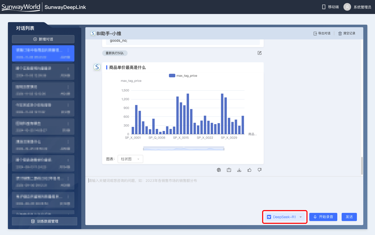 三維天地,作為數(shù)據(jù)資產(chǎn)管理領域的領軍企業(yè),始終致力于為企業(yè)提供更精準、更先進的智能化解決方案。并積極推動AI技術與數(shù)據(jù)資產(chǎn)管理業(yè)務的融合應用,近期推出的全新人工智能體產(chǎn)品——SunwayDeepLink智能體,集ChatBI和ChatDOC兩大功能于一身,與DeepSeek(深度求索)實現(xiàn)全面深度適配,旨在為企業(yè)構建一個“數(shù)據(jù)-洞察-決策”一體化的管理平臺,為企業(yè)數(shù)據(jù)資產(chǎn)管理進一步賦能增效!