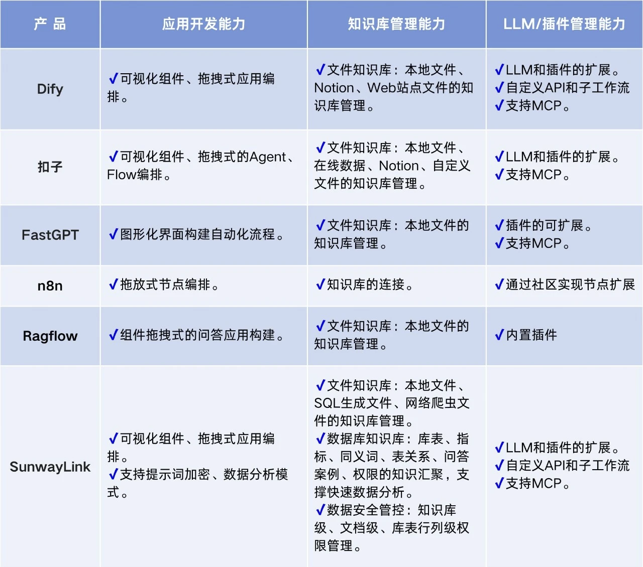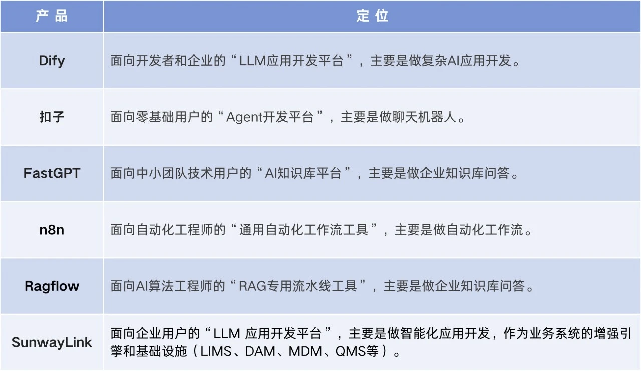 AI應(yīng)用開(kāi)發(fā)平臺(tái),Dify、扣子、FastGPT、n8n、Ragflow、SunwayLink怎么選?