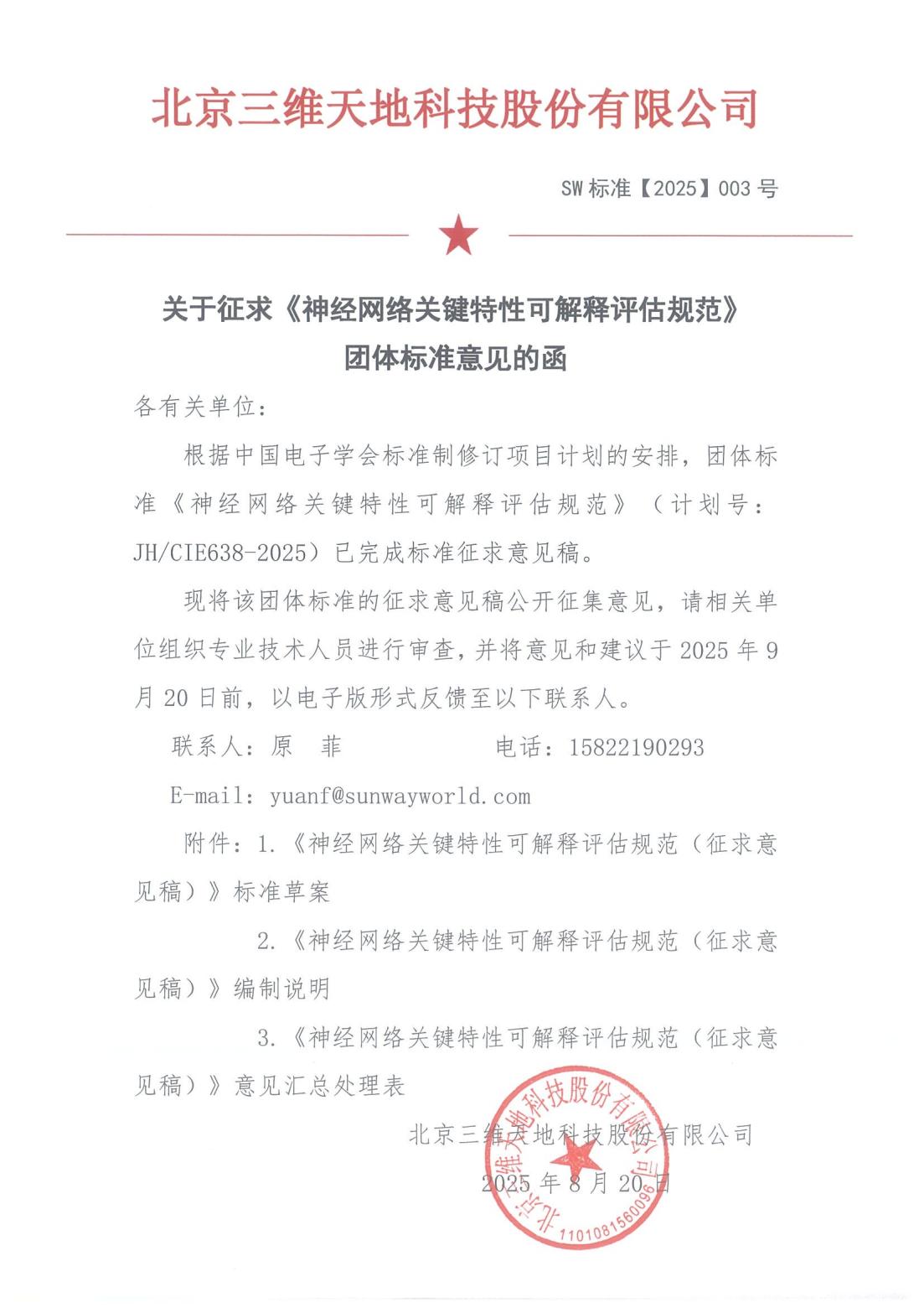 關(guān)于征求《神經(jīng)網(wǎng)絡(luò)關(guān)鍵特性可解釋評估規(guī)范》團(tuán)體標(biāo)準(zhǔn)意見的函