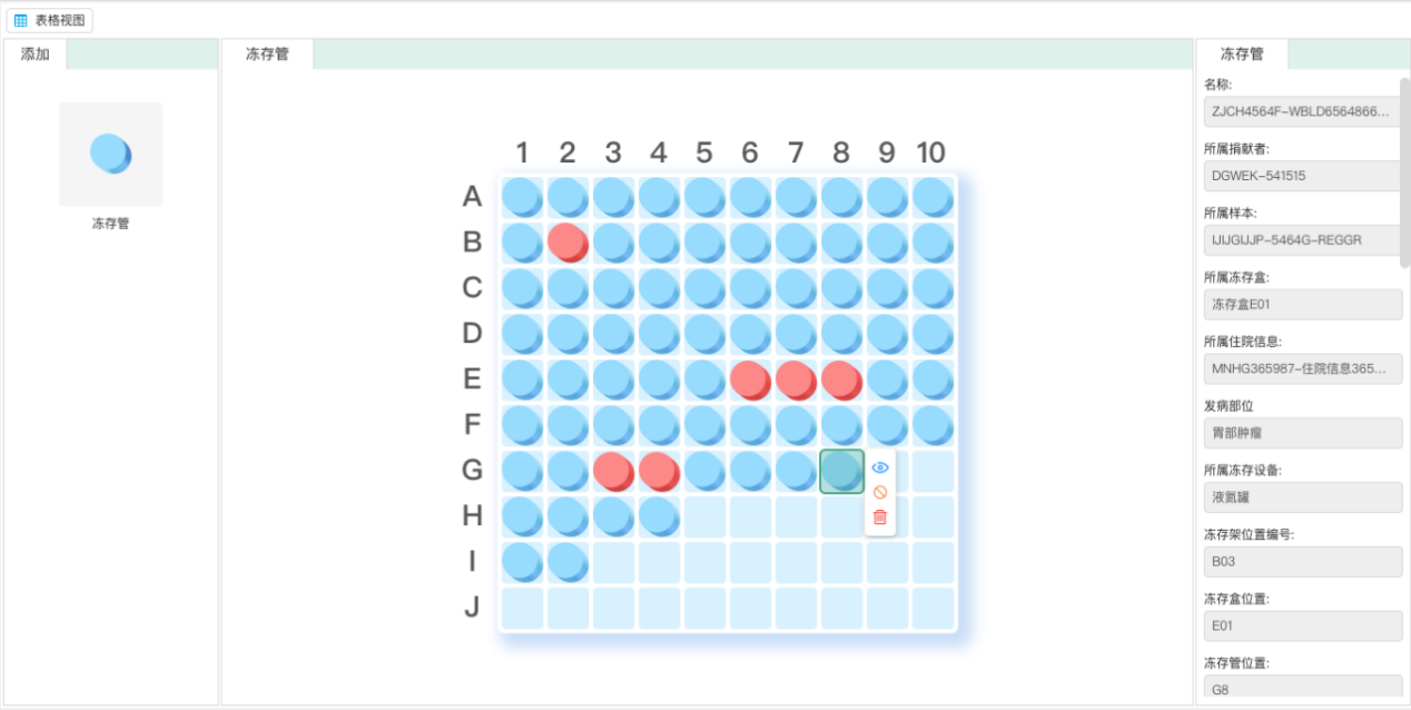- 生物樣本全程可視,溯源精準(zhǔn)高效:對生物樣本存儲(chǔ)柜規(guī)格、布板進(jìn)行可視化建模,樣本存儲(chǔ)分布按實(shí)物布局實(shí)現(xiàn)可視化監(jiān)控與精準(zhǔn)追蹤。系統(tǒng)確保每一份樣本信息可快速定位、狀態(tài)清晰可見,為樣本安全和高效利用提供強(qiáng)力保障。