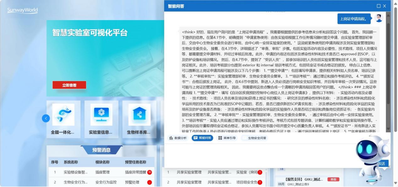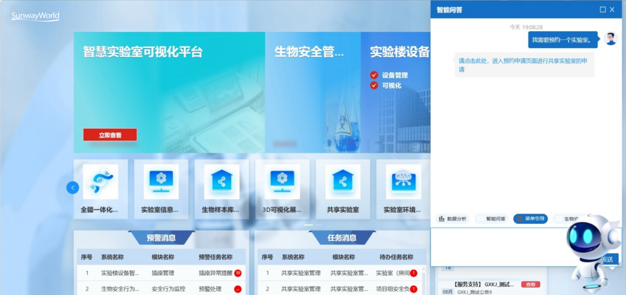 - 交互范式革新,操作化繁為簡:SunwayLink AI應(yīng)用開發(fā)平臺(tái)深度融入省統(tǒng)籌業(yè)務(wù)協(xié)同平臺(tái),創(chuàng)新引入智能對話導(dǎo)航功能。用戶只需“動(dòng)動(dòng)口”,即可快速定位繁雜的業(yè)務(wù)菜單,極大簡化操作指引,重新定義實(shí)驗(yàn)室業(yè)務(wù)系統(tǒng)的便捷交互新體驗(yàn)。