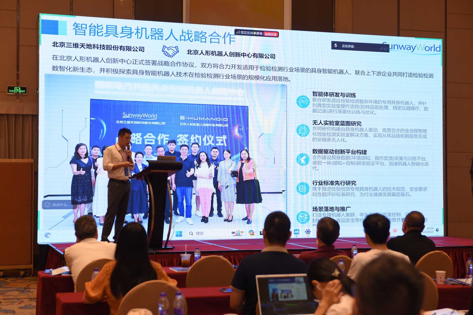 三維天地技術(shù)專家在專場(chǎng)中發(fā)表了《數(shù)據(jù)+AI驅(qū)動(dòng)實(shí)驗(yàn)室智慧化建設(shè)分享》主題演講,系統(tǒng)揭示了檢驗(yàn)檢測(cè)領(lǐng)域智能化升級(jí)的核心路徑與創(chuàng)新實(shí)踐。